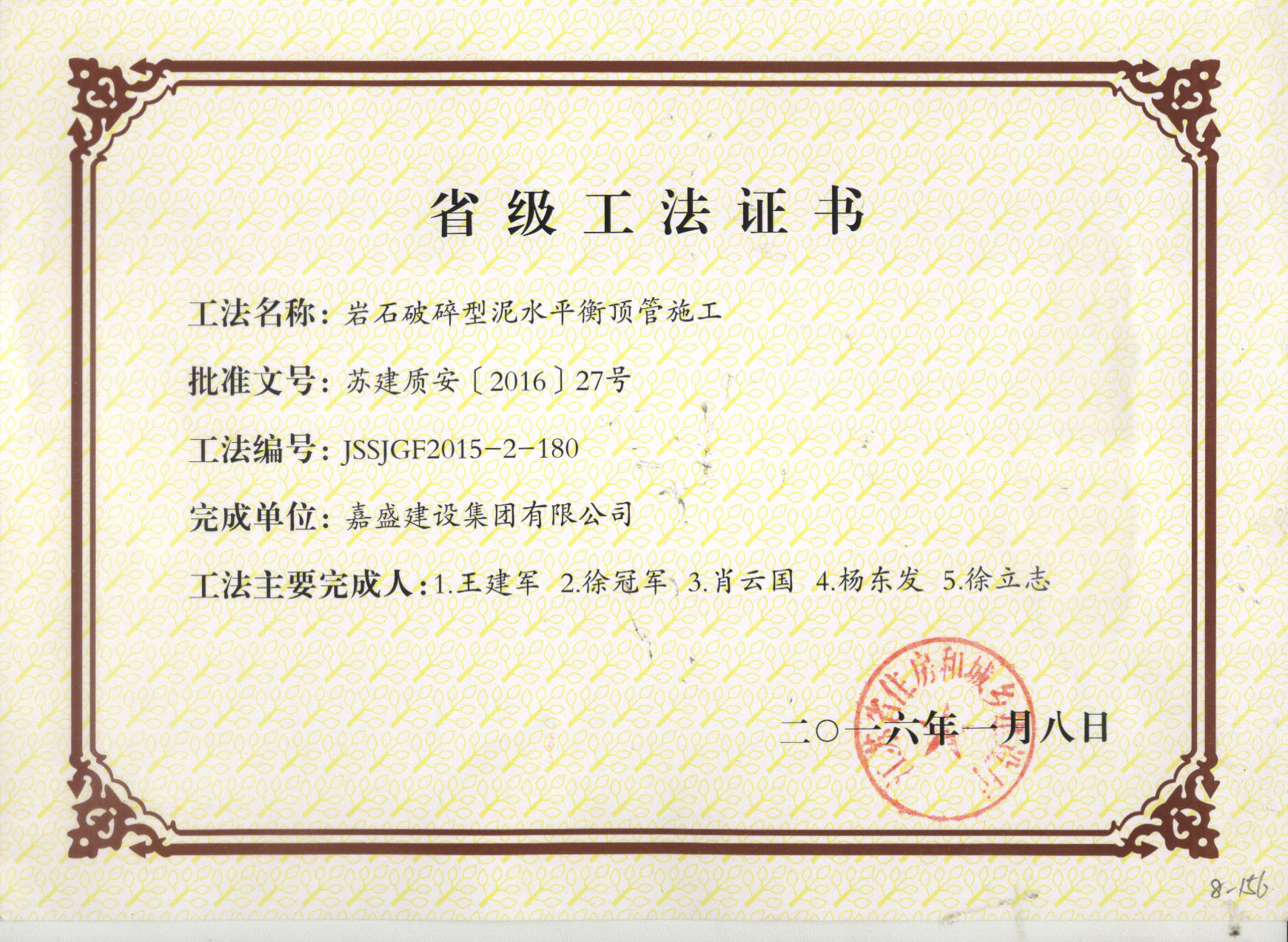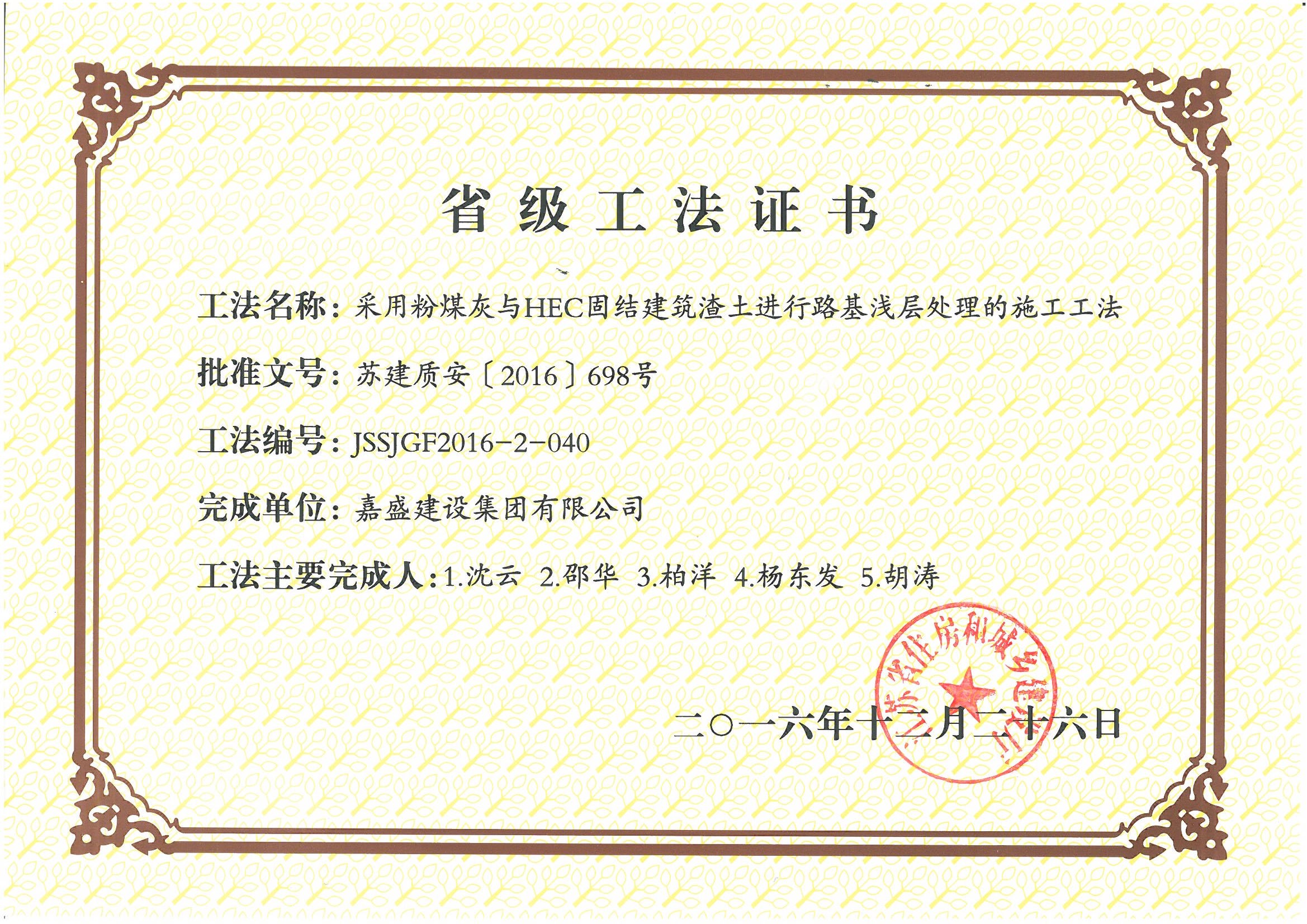 集团拥有发明专利一项,实用新型专利四项,省级工法四项以及省级新技术示范工程四项